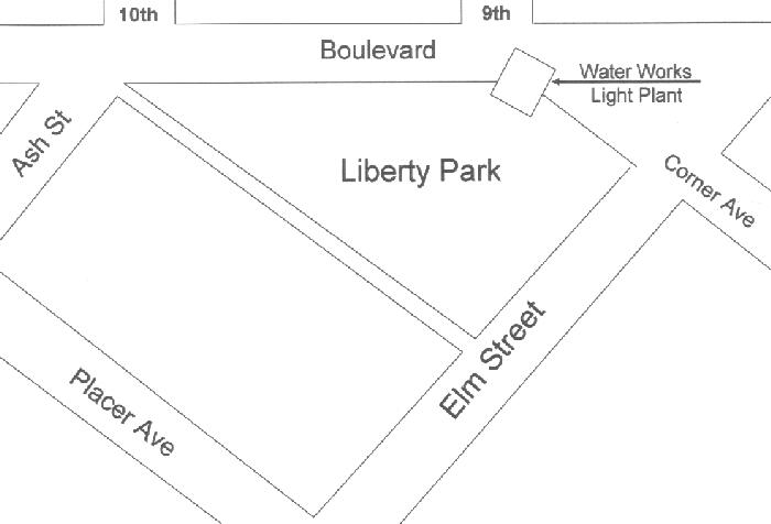 The route of the canal from the crib dam basically followed the east bank of the Snake River to the Butte railroad tracks, then veered southeast to go under the overpass toward Anderson Street near the grade school. Here it entered a rather large lake covering the north ends of Bingham, Bear, and Bannock Streets. Water was stored in the lake to be released as needed by the power house. From the outlet of the lake it veered southeast toward North Lee which it followed to about College Street where it passed under the main line of the Union Pacific Railroad. It pretty much followed the east side of the tracks to Boulevard and down Boulevard to the 10th Street power house and its 125 horsepower generator. About seventy-five percent of the power plant building was located in the street right-of-way of either Boulevard or Corner Avenue, with the remaining twenty five percent located where Liberty Park is today on the west side of Boulevard near the intersection of 10th Street.